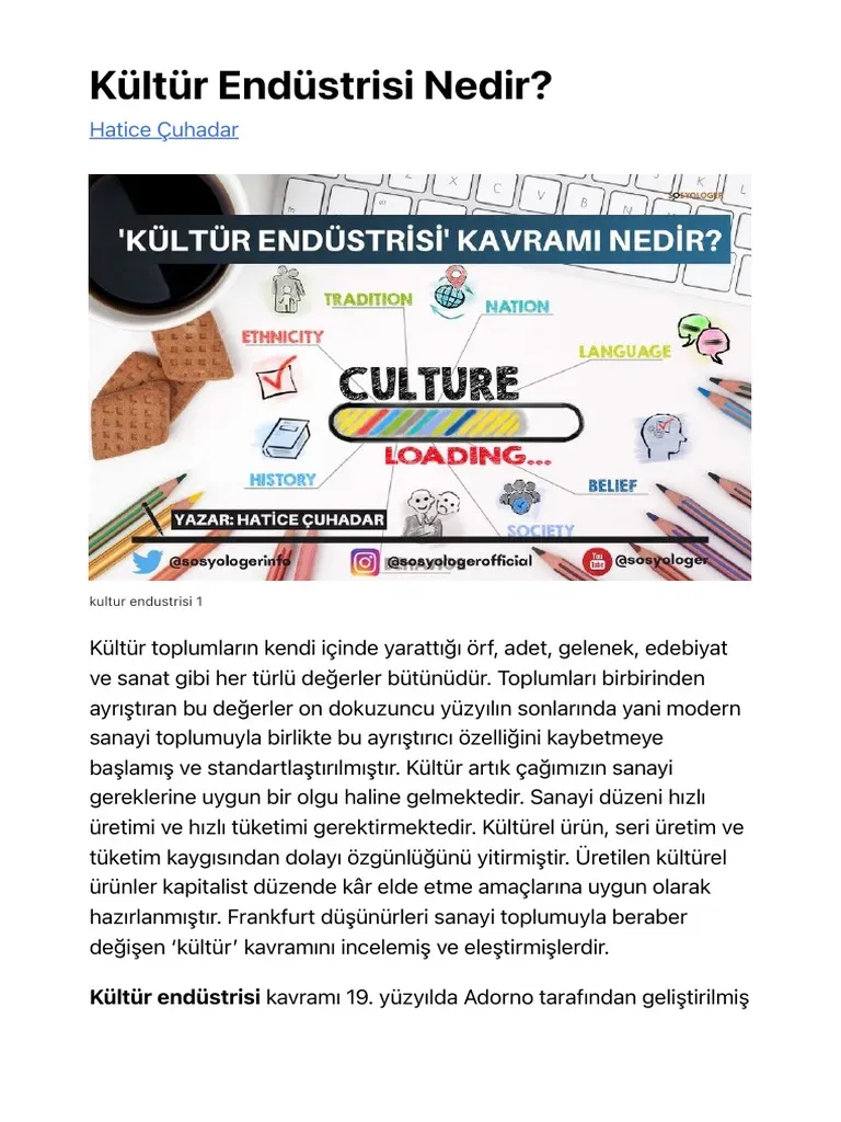 | Kültür Endüstrisi Tanımı | Toplumsal değerler, estetik ve ticari dinamikleri bir araya getirerek ekonomiyi şekillendiren ekosistem; telif hakları, lisanslama ve sanat piyasası iç içe geçer. |